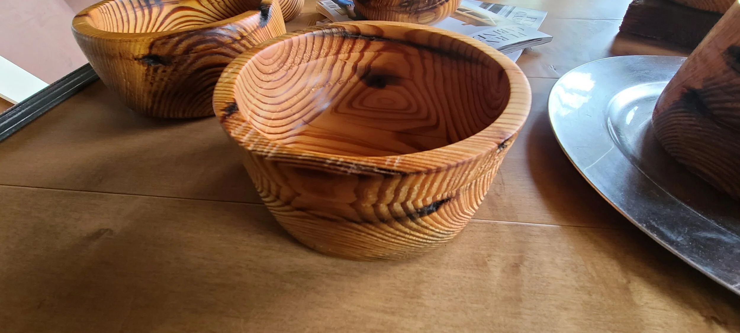 Please note, these bowls are decorative art pieces and won’t hold the milk for your cereal. This wood has voids from old nails and cracks of it’s previous life. Rest assured the bowls are finished with Danish Oil and are food safe once cured, so the bowls can be used to hold fruit, nuts, or gummy bears if you’d like.